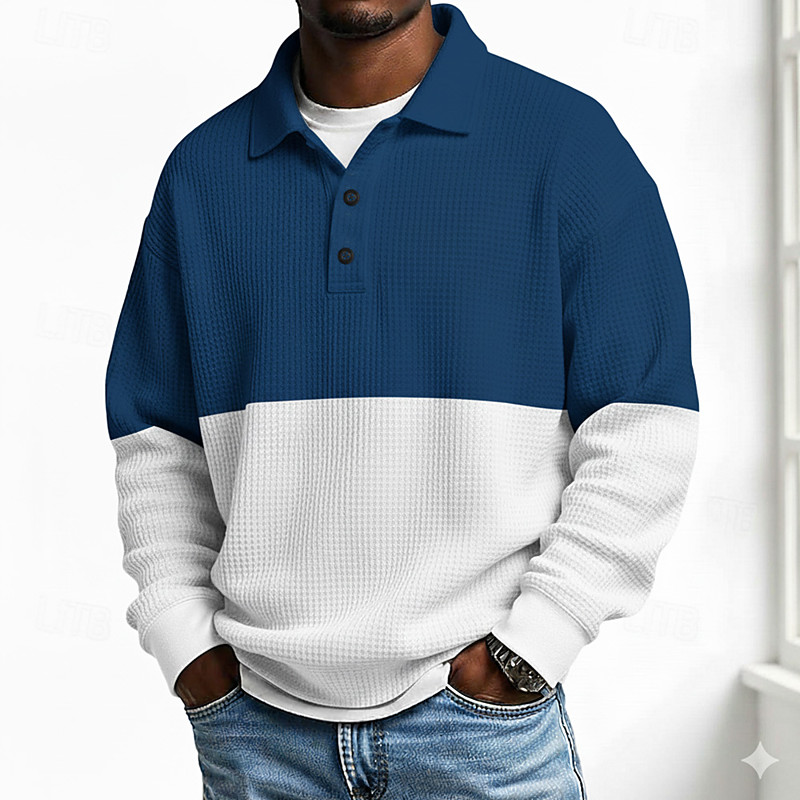 Men's Color Block Polo Long Sleeve Polo Shirts Lapel Casual School Athleisure Daily Wear 3D Print Spring Fall Blue Green Black-white