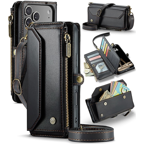 telefono Custodia Per iPhone 17 Pro Max 17 Air 17 Custodia Portafoglio Cerniera con Cordino Cavalletto TPU Pelle PU