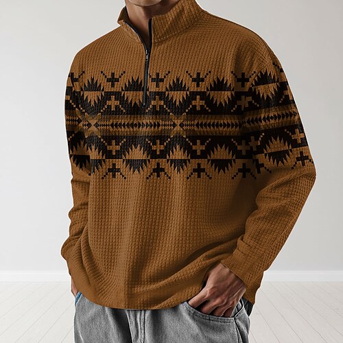 Per uomo Geometrico Felpa con cappuccio Waffle Felpa Moda Quotidiano Etnico Manica Lunga Collo alla coreana Zip a un quarto All'aperto Casa Ufficio Lavoro Bianco Rosso Blu Marrone Con zip Autunno