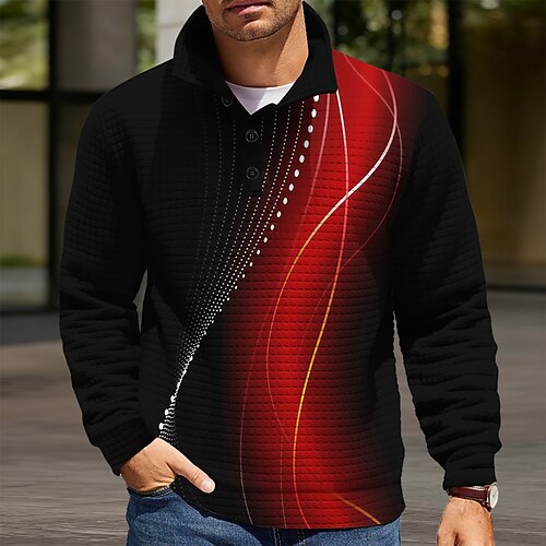 Per uomo Geometrico Nido d'ape Felpa Quotidiano Classico Casual Collo alla coreana All'aperto Casa Lavoro Regalo Blu Rosso Verde Grigio Bottoni Autunno Inverno progettista S M L XL XXL XXXL