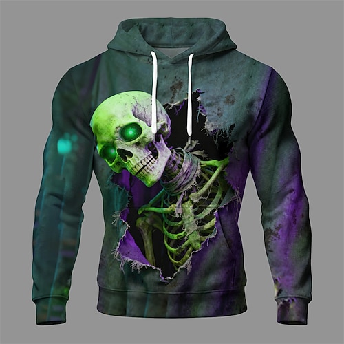 Halloween Per uomo Teschio Felpa con Cappuccio Moda Quotidiano Casual Manica Lunga Con Cappuccio Vacanza Feste Abbigliamento casual alla moda Festival Verde Coulisse Tasca Stampa Autunno Inverno