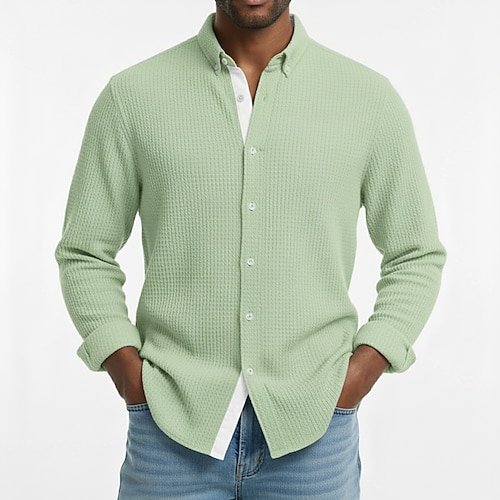 Per uomo Camicia Camicia con colletto alla coreana Camicia Estiva Abbigliamento da spiaggia Camicia casual Camicia con Bottoni Semplice Vacanza Abbigliamento quotidiano Nero Bianco Azzurro cielo Verde