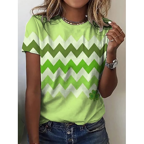 T-shirt da donna per il giorno di San Patrizio grafica geometrica shamrock alla moda classica casual maniche corte collo tondo tops regolari per uscite quotidiane stampa verde scuro verde estate