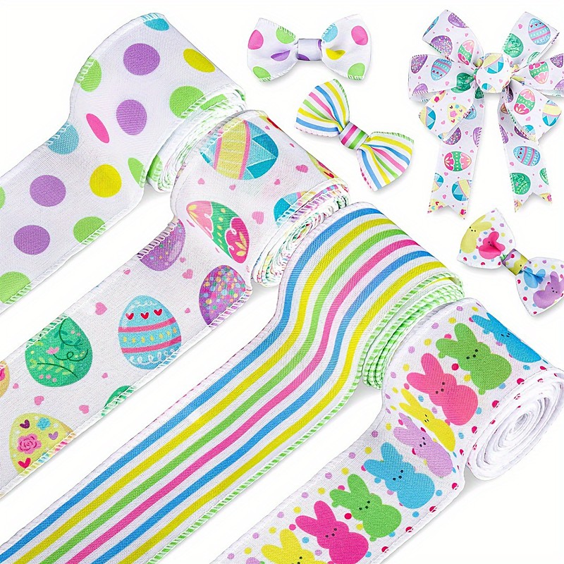 4 Pack Easter Bunny Ribbon, Creative Colorful Easter Egg and Bunny Print Ribbons, Striped Decorative Bow for Holiday Atmosphere, Perfect for Spring Festive Decor