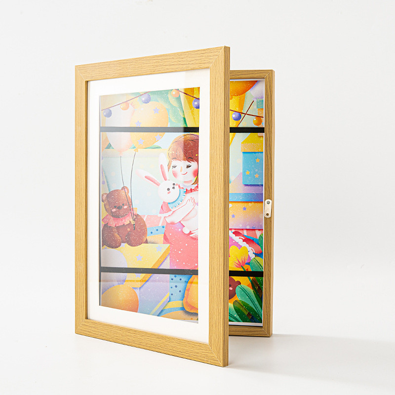 1pc Kids Art Frame Storage Supplies Magnetic Front Opening Changeable Children Artwork Picture Frame Poster 3D Drawing Paintings Schoolwork Display Paintings Organizer Box
