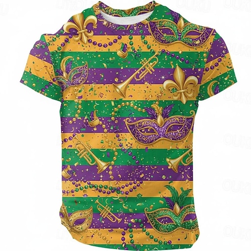 Anime Stampa 3D Martedì Grasso 2026 Corte T-shirt Cartone animato Manga NOLA Grafico per Per uomo Adulti Stampa 3D per Carnevale martedì grasso Feste Casual Quotidiano