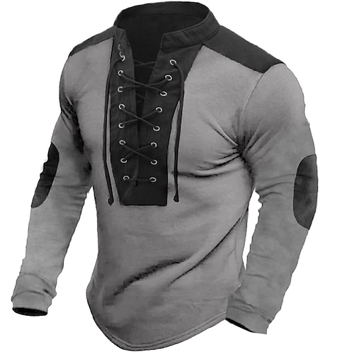 Per uomo Maglietta in cotone e lino Manica Lunga Colletto Mao Henley Estate Primavera Autunno Semplice Essenziale Rustico Moderno Patchwork Coulisse Bottoni Casa Streetwear Casuale Nero Grigio Verde