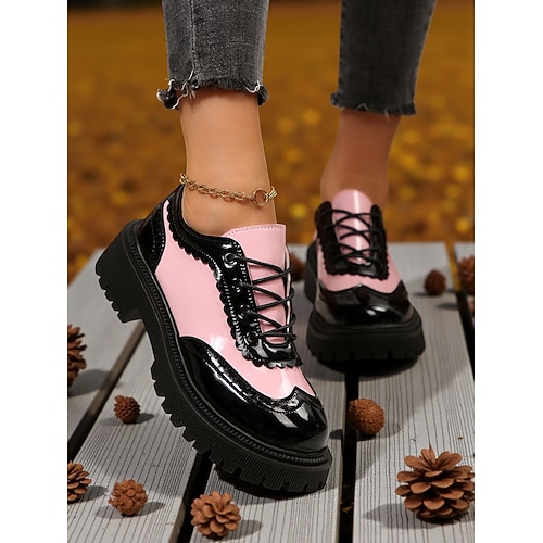 scarpe oxford da donna in similpelle verniciata bianca e nera con plateau e dettagli smerlati - stile punk retrò anni '50, ideali per uscite informali, moda di strada e abbigliamento quotidiano