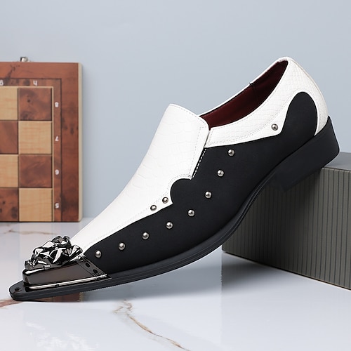 mocassini slip-on da uomo in similpelle rossa con motivo coccodrillo e dettagli borchiati: calzature eleganti per feste di Natale e occasioni speciali