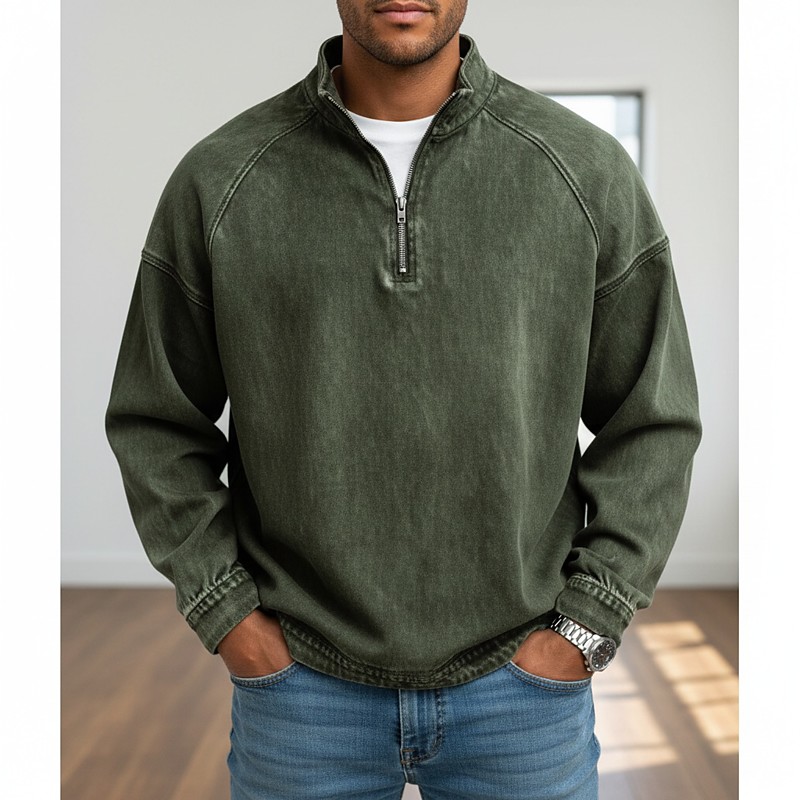 Men's 100% Cotton Acid Wash Shirt Tee Top Long Sleeve Stand Collar Spring Fall Fall Winter Plain Vintage Streetwear Casual Zip Up Basic Casual Home Street Light Blue Black Light Green Top Tee for