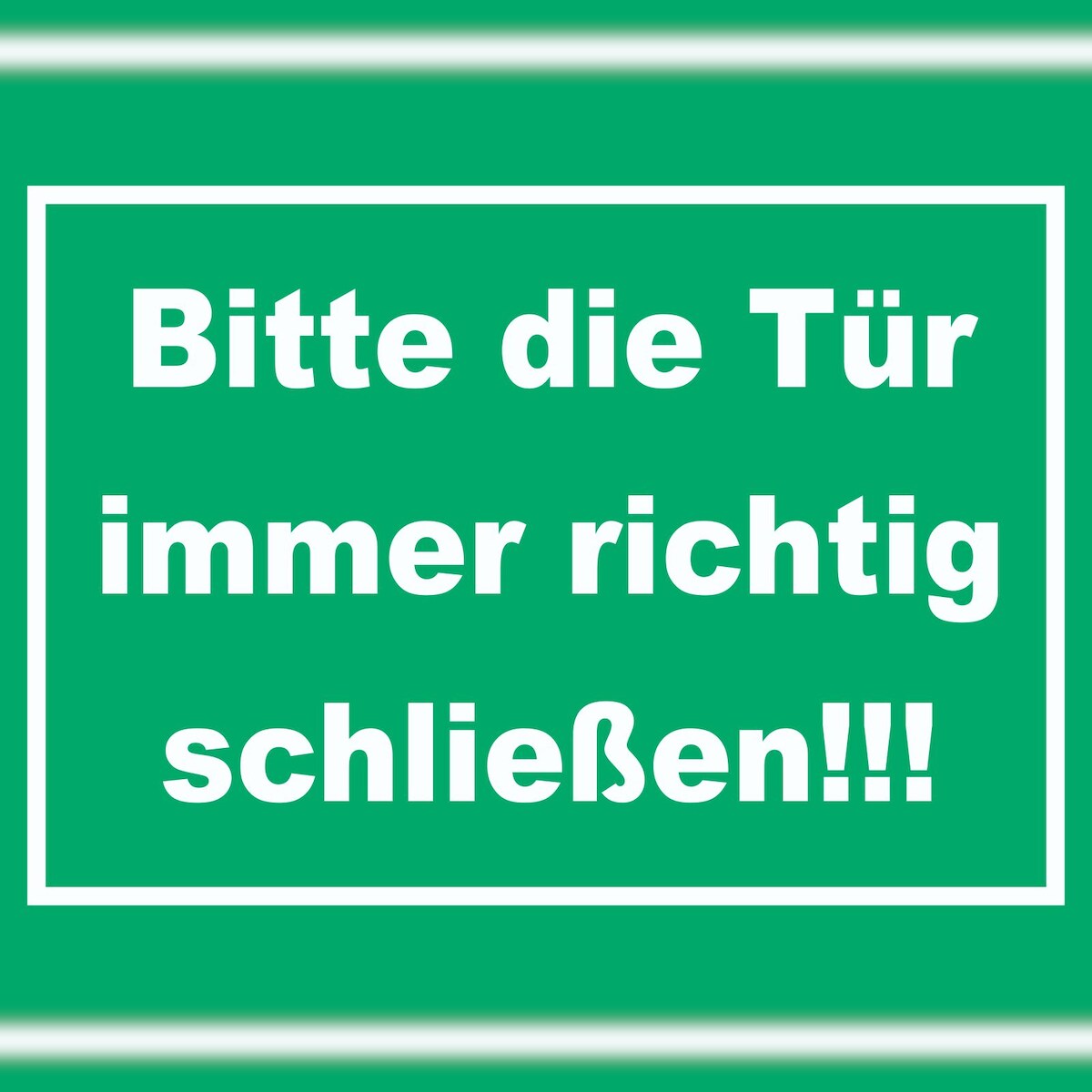 HB-Druck Schild Bitte die Tür immer richtig grün-weiss A6 Rückseite selbstklebend