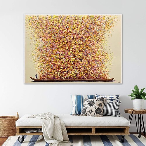 handgemaltes Ölgemälde mit bunten Punkten auf Leinwand, modernes strukturiertes Blumenboot-Gemälde, Wandkunst, 3D-Blumengemälde, zeitgenössische Kunst, großes Wandkunst-Ölgemälde für die