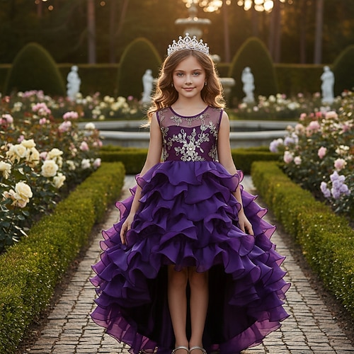 Blumenmädchenkleid Mädchen Formelle Kleidung Hochzeitskleidung Party Hochzeit Formell Mode Niedlich Prinzessin Kleid für die Erstkommunion Patchwork Netz Einfarbig Ärmellos Rundhalsausschnitt