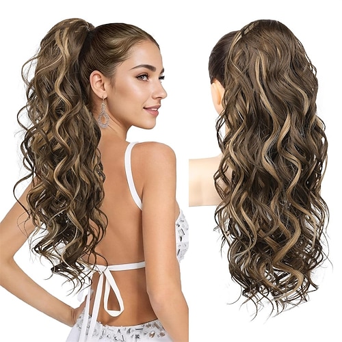 Pferdeschwanzverlängerung, 45 cm (18 Zoll) lange Pferdeschwanzverlängerung mit Haarspange, gewellte Pferdeschwänze, Haarverlängerungen mit Haarclip, natürliches Kunsthaar für den täglichen Gebrauch,