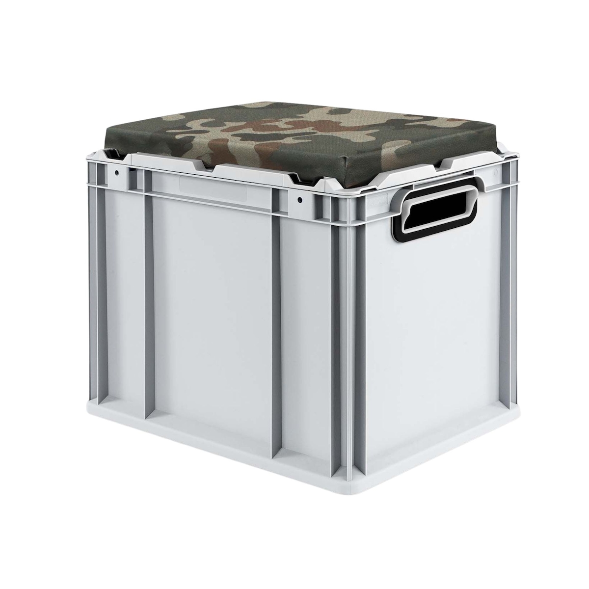 PROREGAL Eurobox NextGen Seat Box Camouflage | HxBxT 36,5x30x40cm | 30 Liter | Griffe offen | Eurobehälter, Sitzbox, Transportbox, Transportbehälter