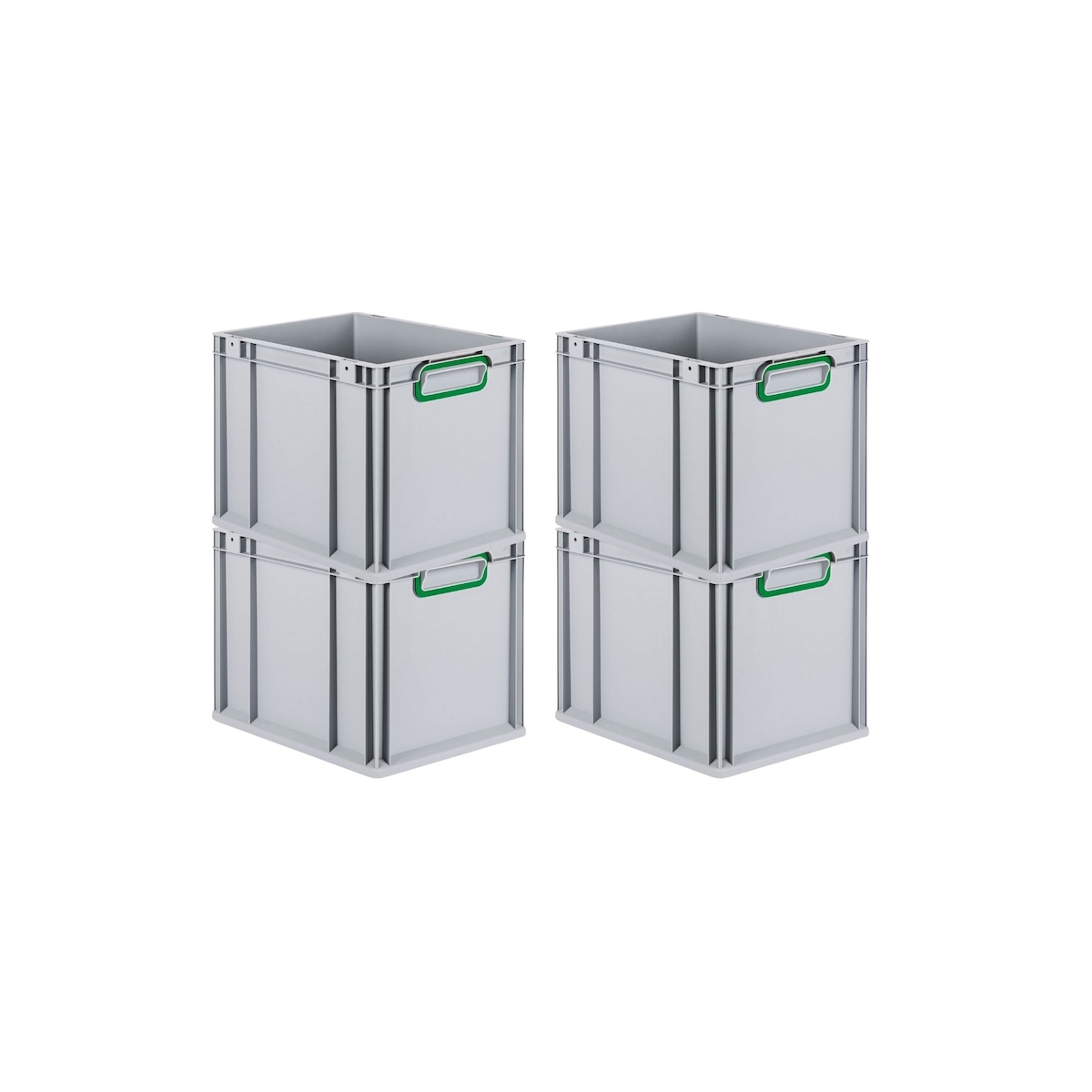 PROREGAL 4x Eurobox NextGen Color | HxBxT 22x30x40cm | 30 Liter | Griffe grün geschlossen | Glatter Boden | Eurobehälter
