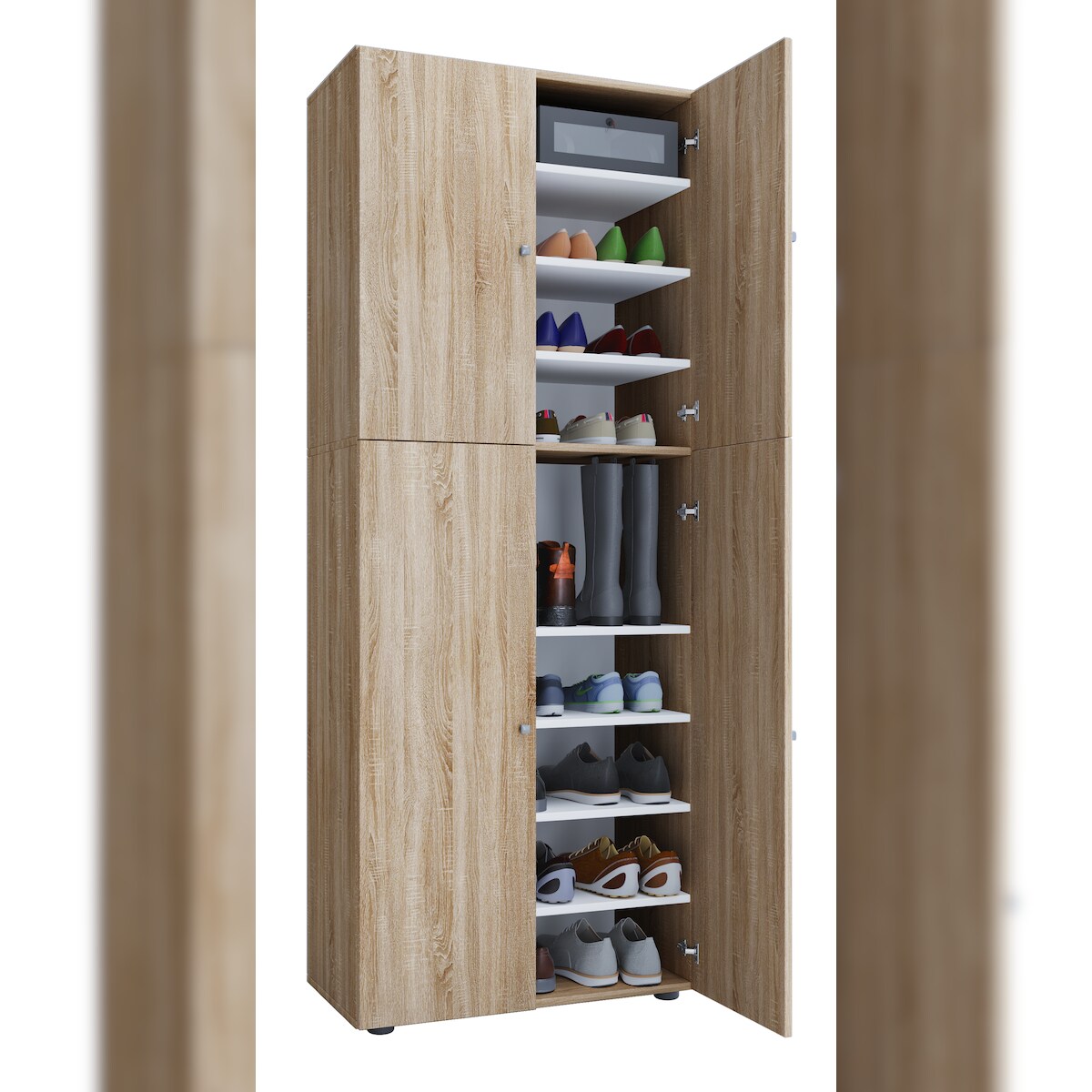 VCM Schuhschrank Lona Sonoma-Eiche (Sägerau) B. 70 x H. 184 x T. 40 cm