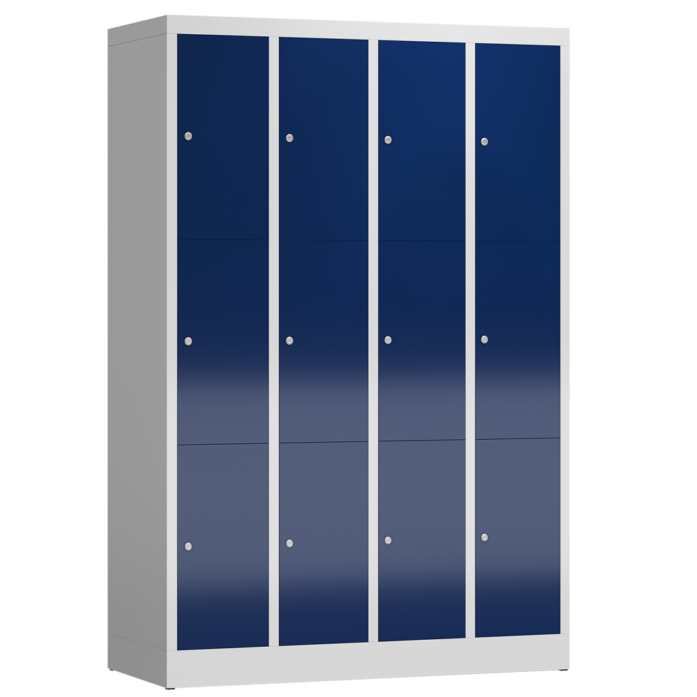 ClassiX Schließfachschrank, 4 Abteile à 3 Fächer, 1800 x 1185 x 500 mm, lichtgrau/enzianblau