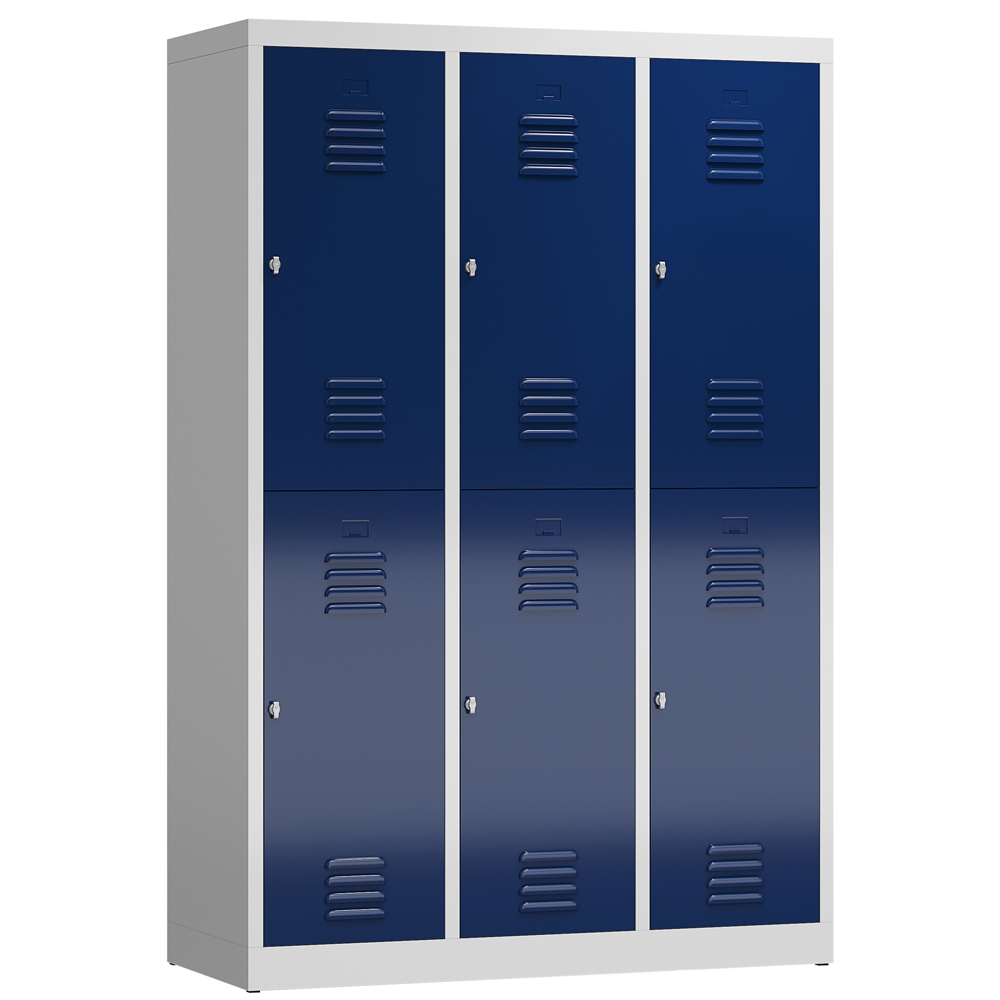 ClassiX Garderobenschrank, 3 Abteile doppelstöckig, 1800 x 1185 x 500 mm, lichtgrau/enzianblau