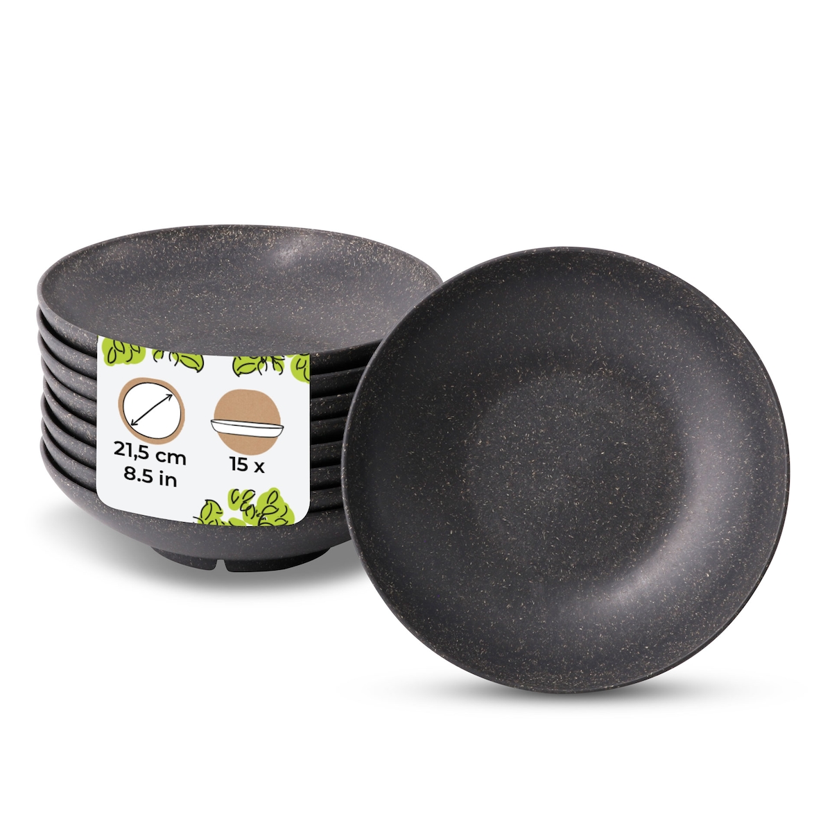 BIOZOYG 15 Stück Pasta-Teller Salat-Teller Ø21,5cm Wiederverwendbare Teller, Tiefe Teller, spülmaschinenfest, mikrowellengeeignet, umweltfreundlich