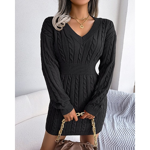 Per donna Mini Abito Abito in maglia Attillato Tubino Moda Moderno Vacanza Ferie Weekend Vestibilità regolare Semplice Manica Lunga Scollo a V Nero Bianco Blu Marrone Primavera Autunno