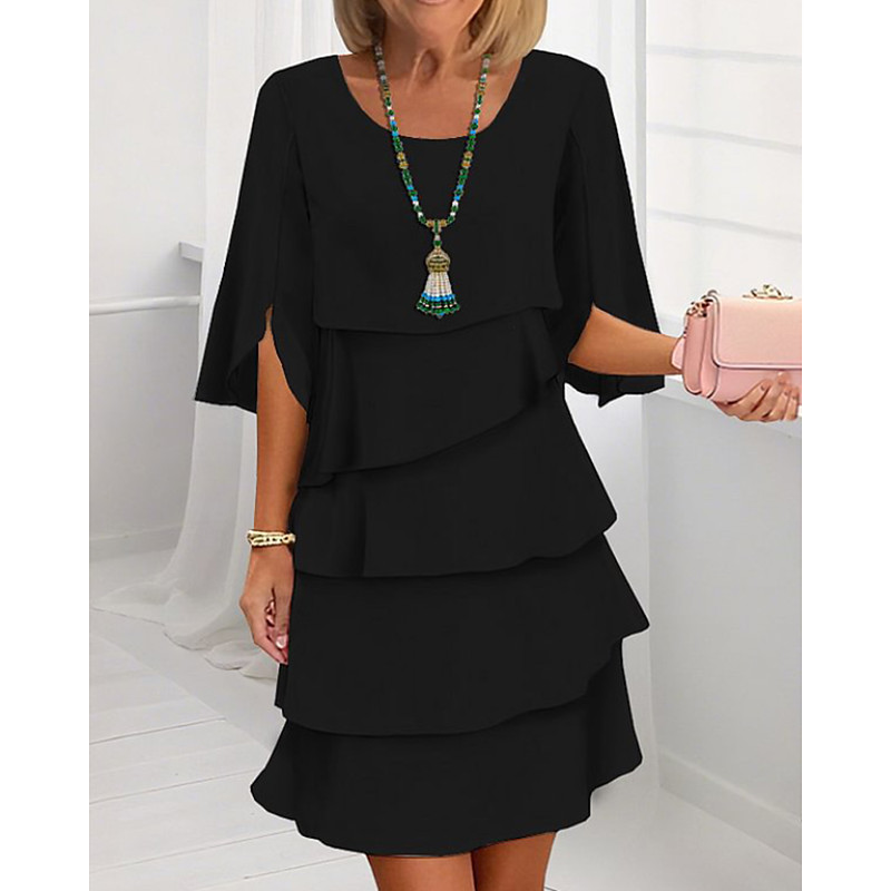 Women's Mini Dress Chiffon Dress Tiered Dress Fashion Modern Outdoor Holiday Going out Regular Fit Plain Half Sleeve Crew Neck Blue Black White Pink Spring Fall