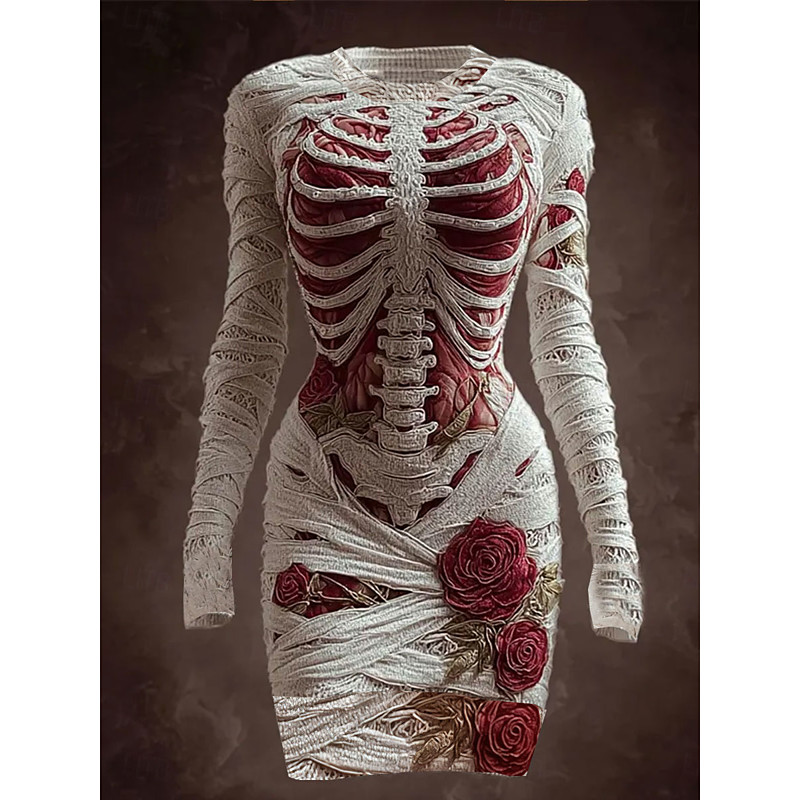 Women's Mini Dress Bodycon T Shirt Dress Tee Dress Bodycon Dress Vacation Casual Party Regular Fit Graphic Skull Long Sleeve Crew Neck White Spring Fall Winter