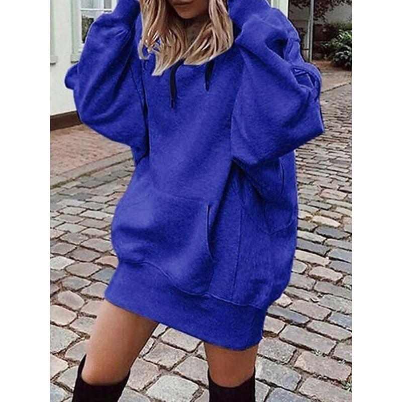 Women's Mini Dress Hoodie Dress Casual Dress Fashion Modern Daily Office Vacation Loose Fit Plain Long Sleeve Hooded Blue Pink Wine Navy Blue Spring Fall Winter