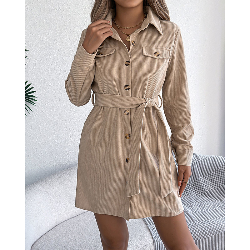 Women's Mini Dress Shirt Dress Fashion Modern Daily Office Holiday Regular Fit Plain Long Sleeve Shirt Collar Black Wine Khaki Spring Fall Winter