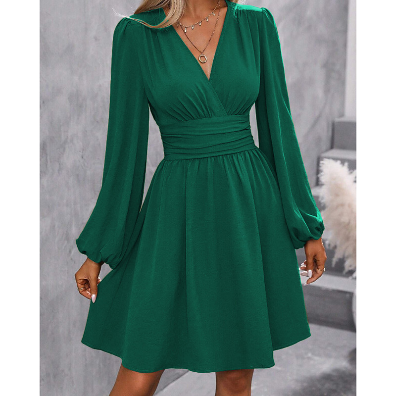 Women's Mini Dress Casual Dress Ruched Dress Modern Daily Going out Weekend Regular Fit Plain Long Sleeve V Neck Black Wine Army Green Navy Blue Spring Fall
