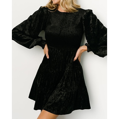 Per donna Mini Abito Vestito Casual Abito arricciato Moderno Quotidiano Uscire Weekend Vestibilità regolare Semplice Manica Lunga Scollo a V Nero Vino Verde militare Blu marino Primavera Autunno