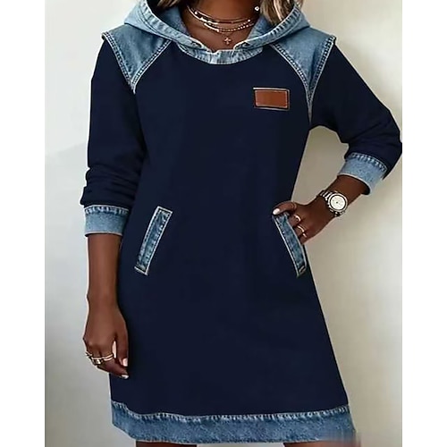Per donna Mini Abito Abito con Cappuccio Vestito Casual Moda Moderno Quotidiano Ufficio Vacanza Vestibilità comoda Semplice Manica Lunga Con Cappuccio Rosa chiaro Nero Rosso Verde Primavera Autunno