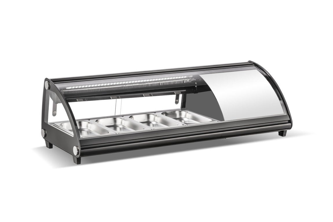 Ristoattrezzature Gekühlte Sushi-Vitrine auf der Arbeitsplatte - Aufklappbares gebogenes Frontglas - Eingebauter Motor - Schwarz - 8 gn 1/3 - 175,4 x 45 x 33 h cm