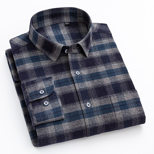 Per uomo Camicia Camicia Estiva Camicia casual Camicia con Bottoni Rosso Blu Arancione Blu scuro Manica Lunga Plaid Bavero Vacanza Camicia hawaiana Bottonato Abbigliamento 100% Cotone Moda Casual