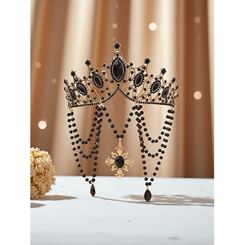 Copricapo gotico da donna con perline nere e gemme rosse - tiara vintage per costumi e cosplay per feste di Halloween
