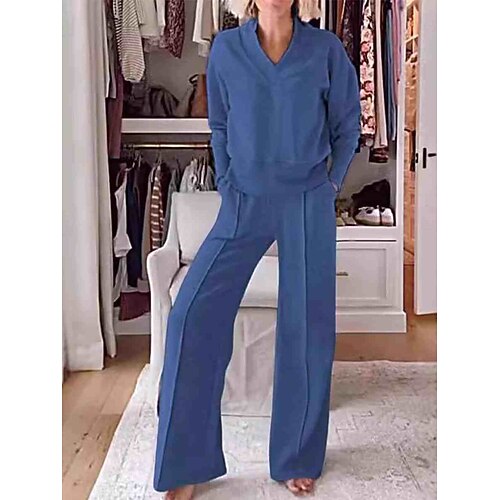 Per donna Tuta Attivo Tinta unica Manica Lunga Gamba larga Scollo a V Con Cintura Vacanza Feste Vestibilità regolare Blu Nero Vino Primavera
