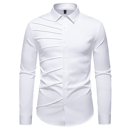 Per uomo Camicia Camicie Camicia con bottoni Liscio Matrimonio Feste Nero Bianco Rosa Vino Manica lunga Bavero Primavera Autunno Abbigliamento
