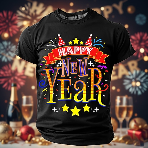 Neujahr Herren glückliches neues Jahr Feuerwerk 2026 T Shirt Kurzarm T-Shirt 3D-Druck Rundhalsausschnitt Hemd Übertrieben Designer Künstlerisch Party Straße Club Blau 1# Schwarz Rote Herbst Winter