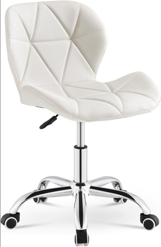CLIPOP White Office Desk Chair Adjustable Height Computer Swivel Chair with Chrome Base and 360° Castors, PU Leather Computer Desk for Home Office Study Room 0098 white 48*36*80 cm