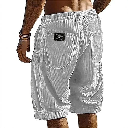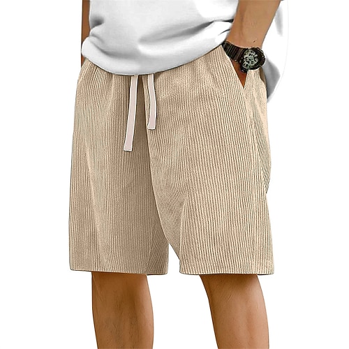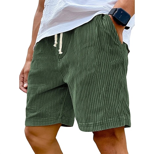 Per uomo Pantaloncini Estivi Shorts da Spiaggia Pantaloncini casual Pantaloncini di velluto a coste Coulisse Elastico in vita Tinta unica Comodità Lunghezza al ginocchio Quotidiano All'aperto