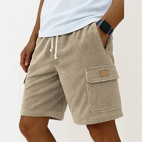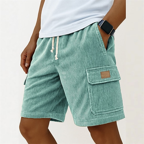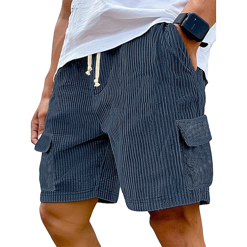 Per uomo Pantaloncini cargo Pantaloncini Estivi Shorts da Spiaggia Pantaloncini casual Pantaloncini di velluto a coste Coulisse Elastico in vita Tinta unica Comodità Lunghezza al ginocchio Quotidiano
