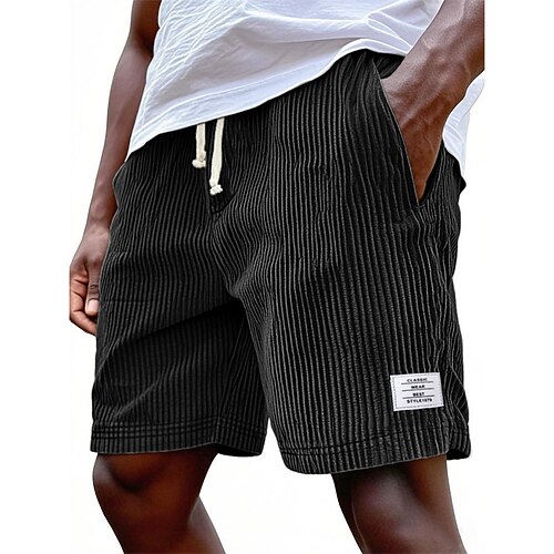 Per uomo Shorts Pantaloncini casual Pantaloncini di velluto a coste Tasca Elastico in vita Semplice Traspirante Lunghezza al ginocchio All'aperto Vacanza Abbigliamento quotidiano Vacanza Moda Nero