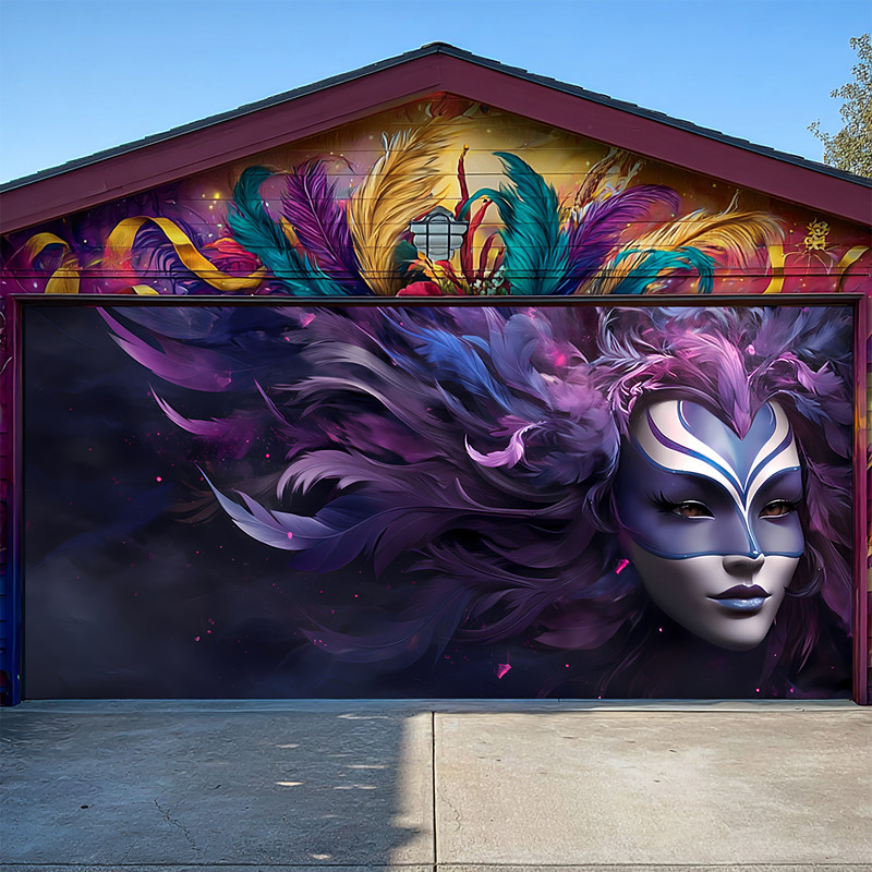 Mardi Gras Garage Door Cover Large Hanging Backdrop Car Mask Feather Luxury Modern 3D Party Outdoor Shooting Backgrounds Front Door Masquerade Home Decor