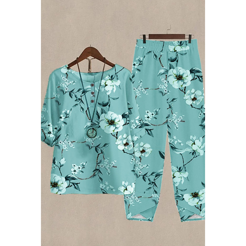 Women's Loungewear Nighty Two Piece Sets Fashion Simple Comfort Pure Color Elastic Waist Basic Cotton Linen Sets T Shirt Pant Home St.Patrick's Day Street Short Sleeve Crew Neck Black Light Green Blue