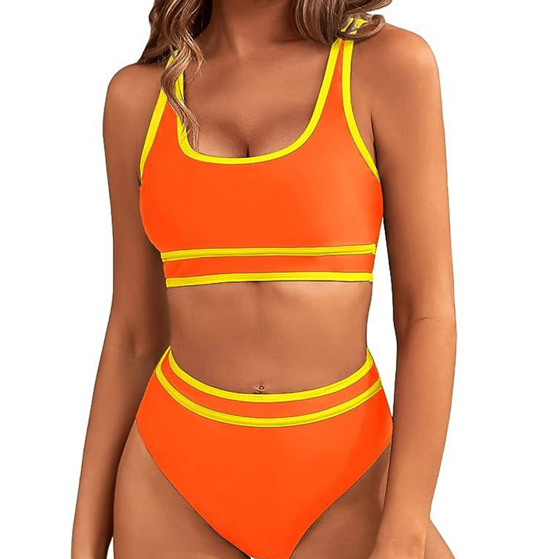 Women's Bikini 2 Piece Swimsuit Colorblock High Waist Slim Backless Vacation Beach Wear Stripe V Neck Sleeveless Bathing Suits