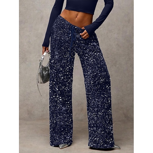 Per donna Pantaloni Pantaloni casual Dritto Moda Streetwear Essenziale Lunghezza intera Vita Alta Semplice Paillettes Tasca Elastico in vita Confortevole Micro-elastico Quotidiano Vacanza Feste Nero