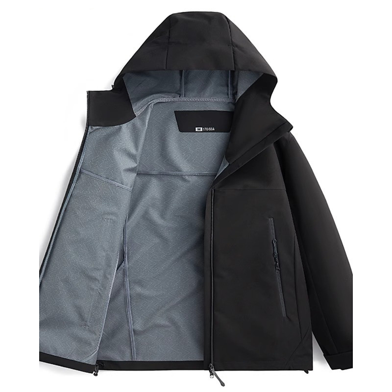 Men's Outdoor Jacket Raincoat Hiking Jacket Vacation Daily Windproof Waterproof Pocket Fall Winter Plain Fashion Classic Hooded Regular Black Purple Khaki Army Green Jacket