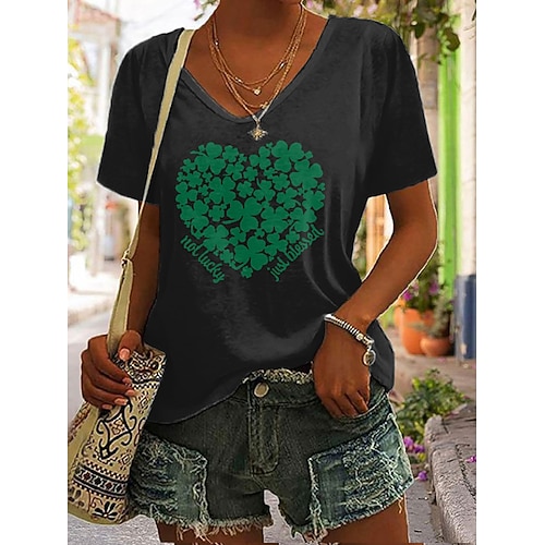 T-shirt da donna di San Patrizio grafica Shamrock vintage elegante classico maniche corte scollo a V top regolare stampa giornaliera nero bianco verde estate primavera autunno inverno