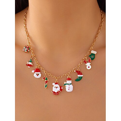 collana con ciondolo natalizio da donna, vari stili con ciondoli a forma di Babbo Natale, pupazzo di neve e albero di Natale, perfetti per feste e regali festivi