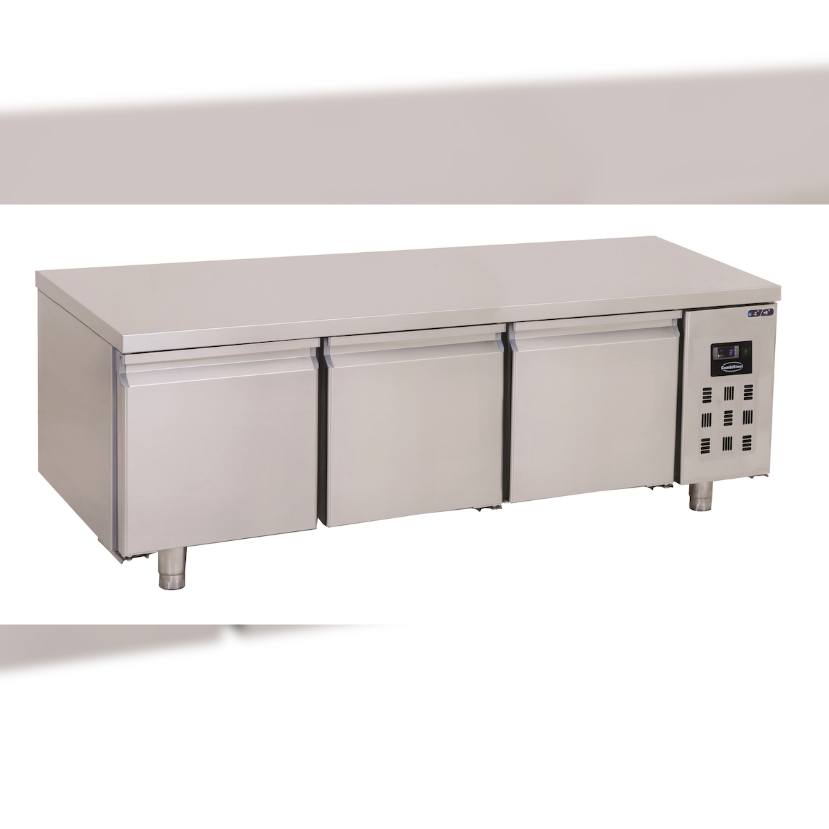 Kühltisch ANOLIS | 3x Tür | 280 Liter, HxBxT 60x160x70cm | -2/+8°C | Edelstahl + CHEFGASTRO Geschirrtuch